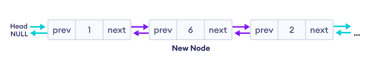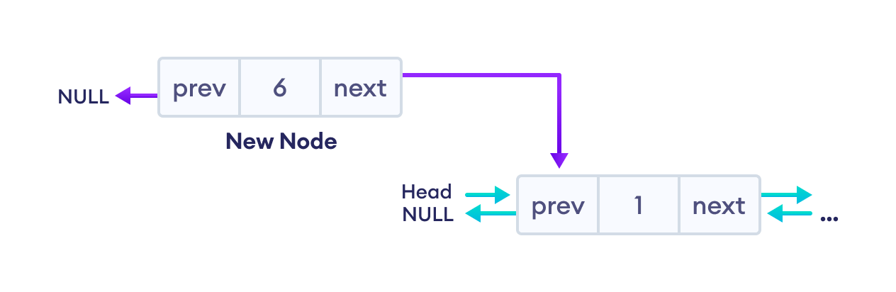 Let's add a node with value 6 at the beginning of the doubly linked list we made above.