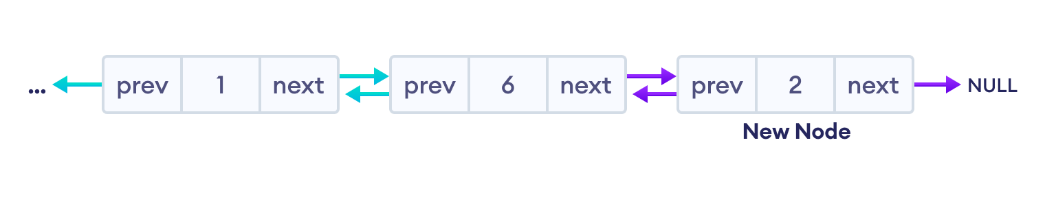 Pushing a node to a doubly-linked list is similar to pushing a node to a linked list, but extra work is required to handle the pointer to the previous node.