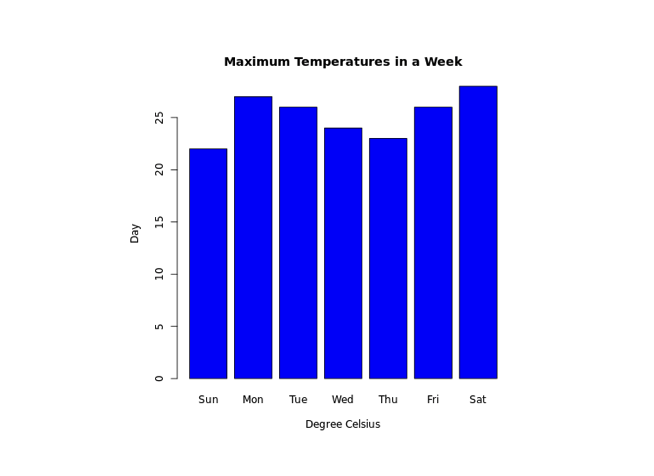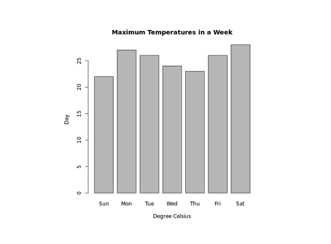 barplot(temperatures, main = "Maximum Temperatures in a Week")
