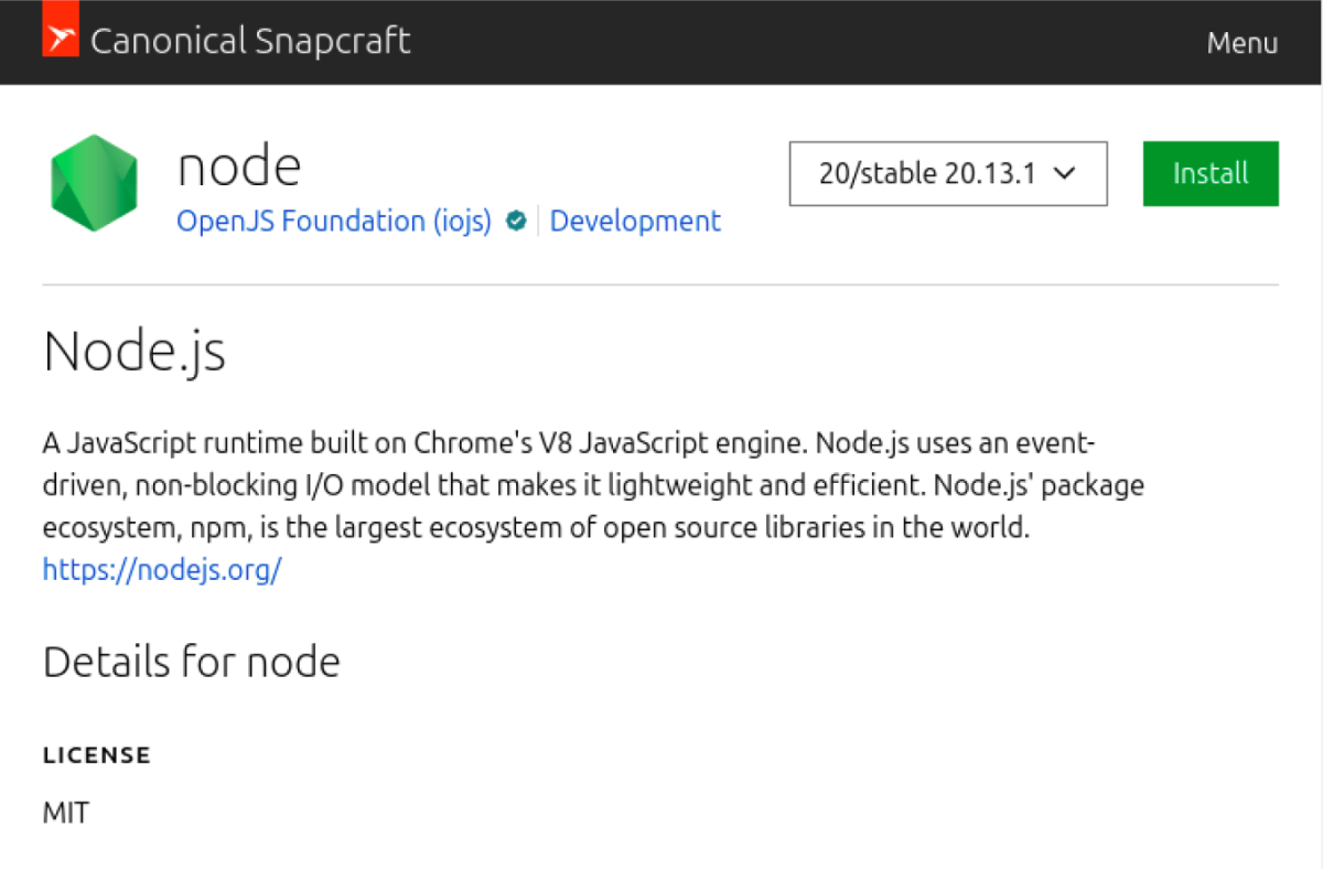 Now, just click the Install button to begin installing. After a few moments, Node will be successfully installed on your device.